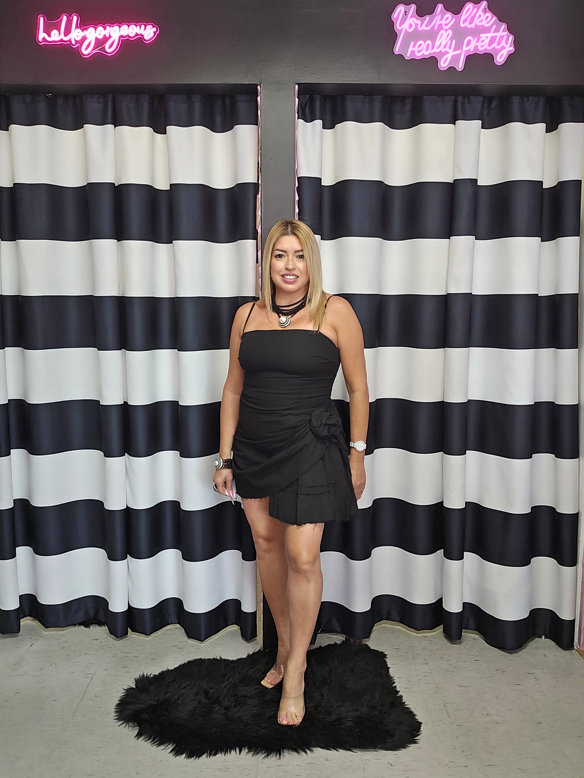 Black Flower Short Dress