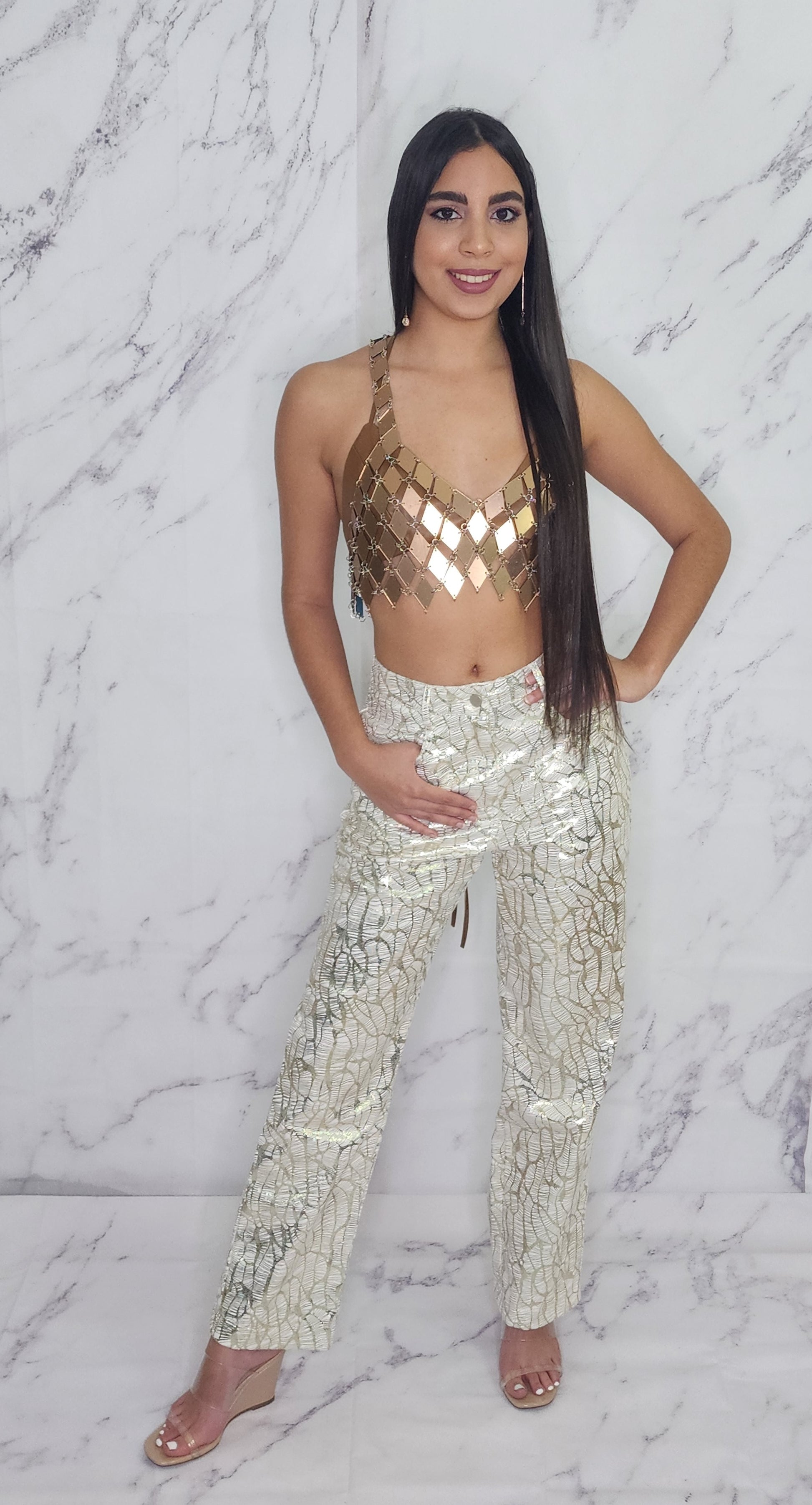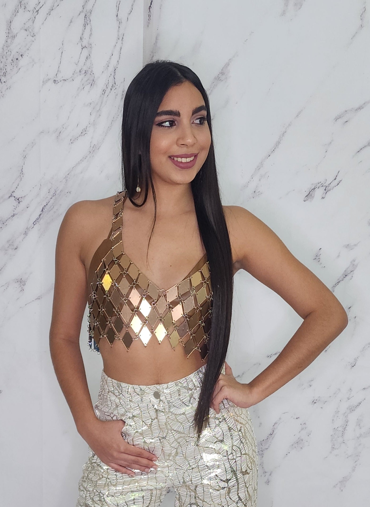 TRIANGLES BRONZE CRYSTALS CROP Top