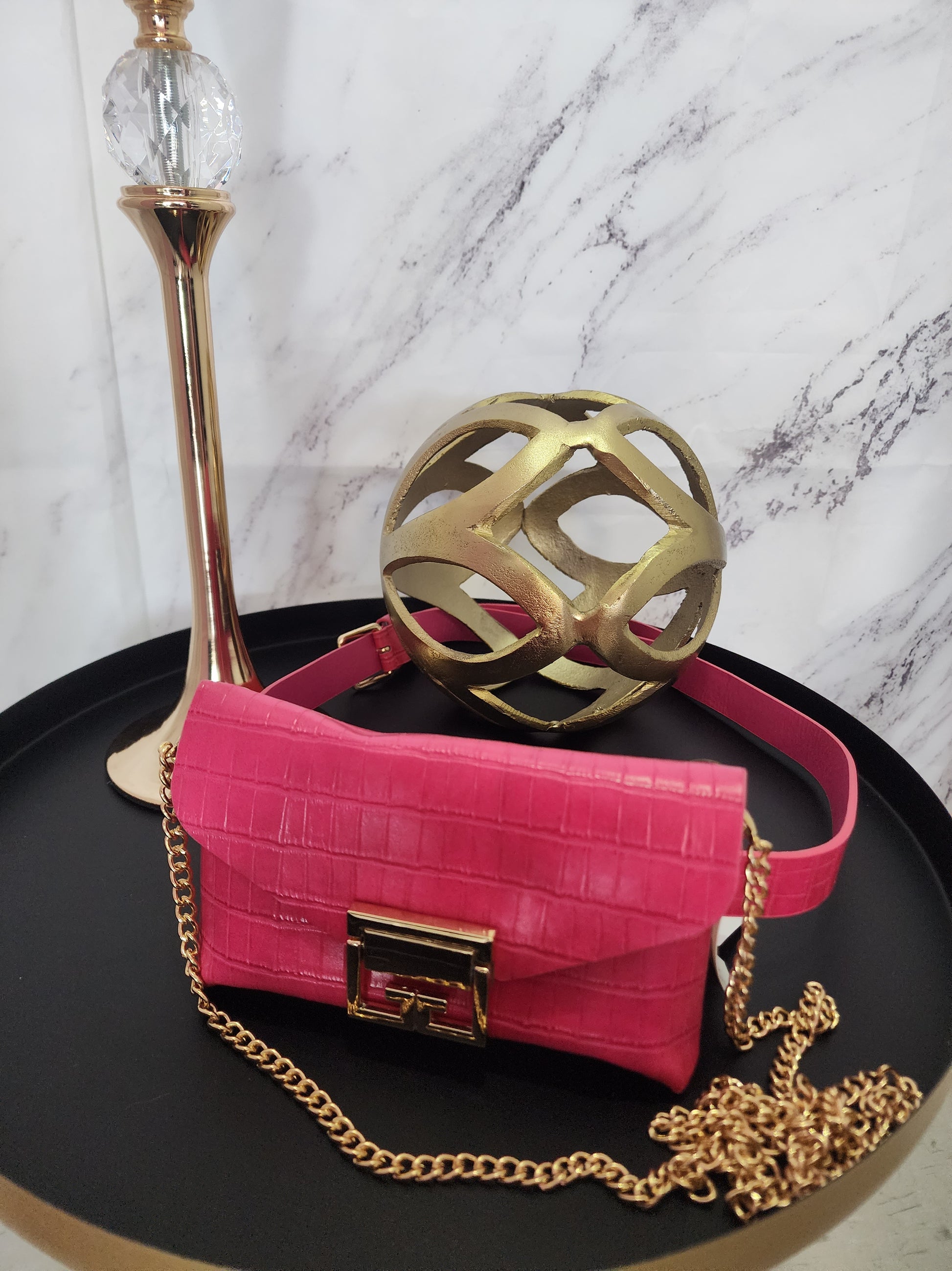 Fucsia Crocodile Belt & Hand Bag