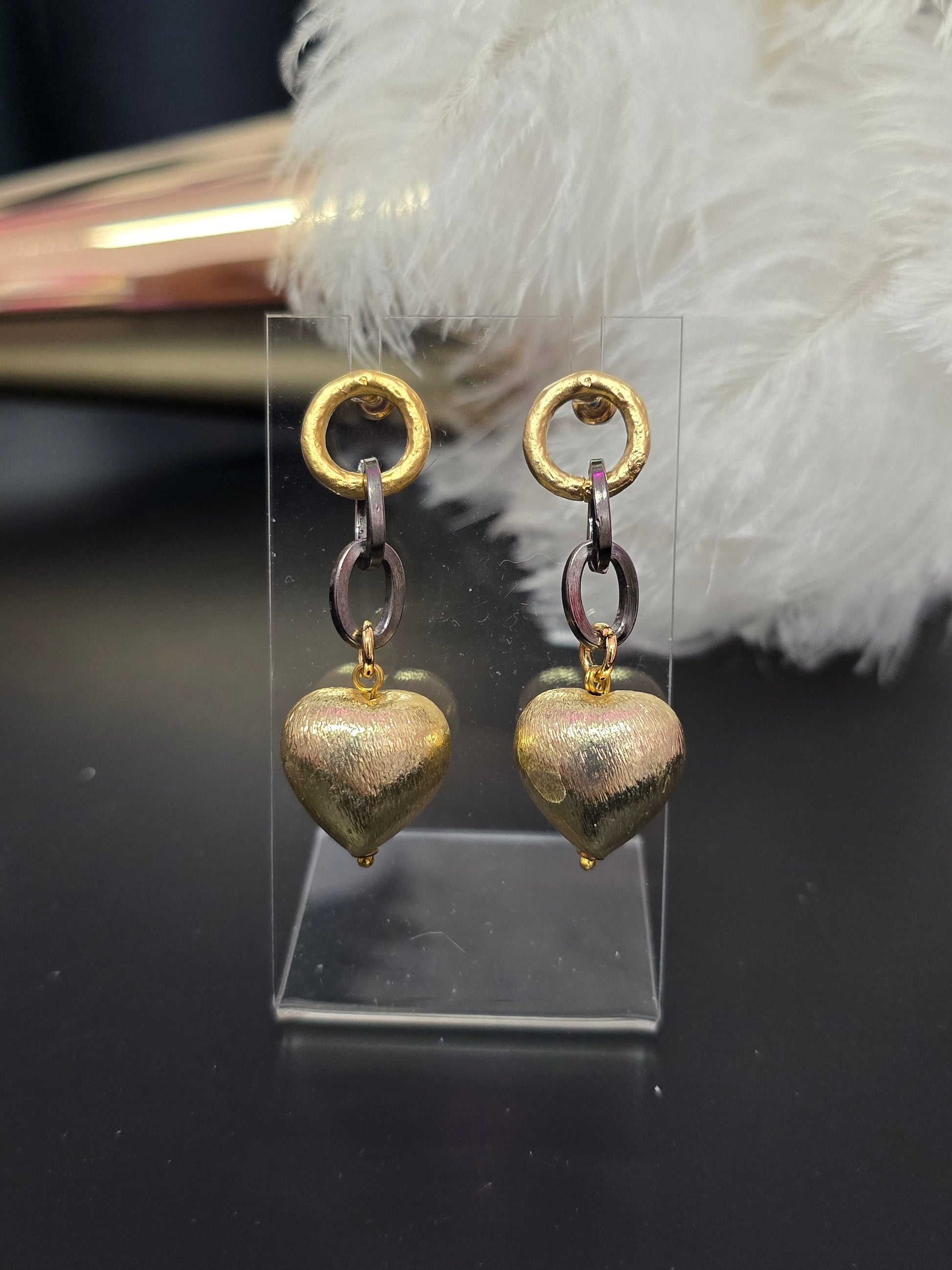 Gold Heart & Charcoal Grey Zamak Earrings