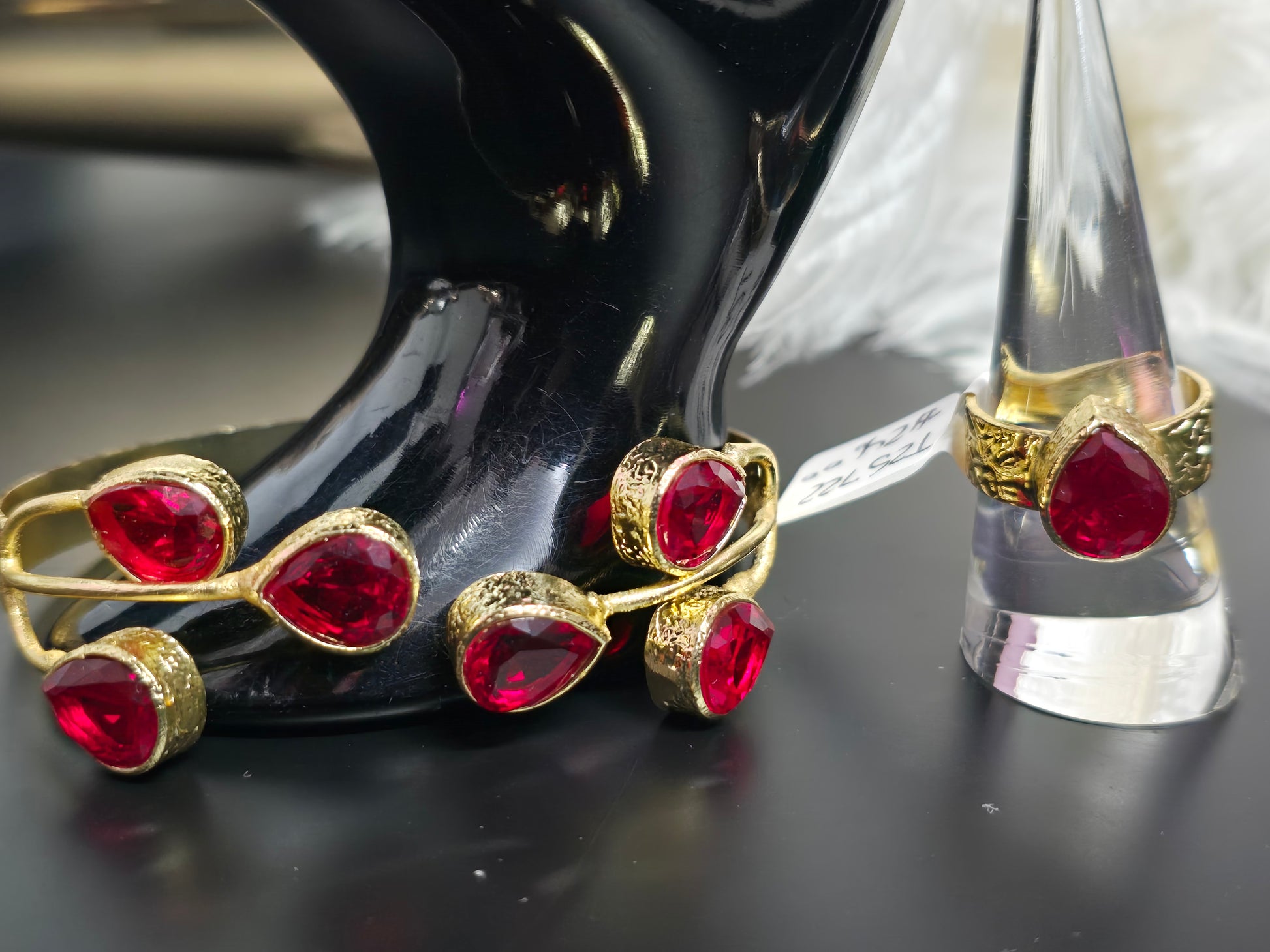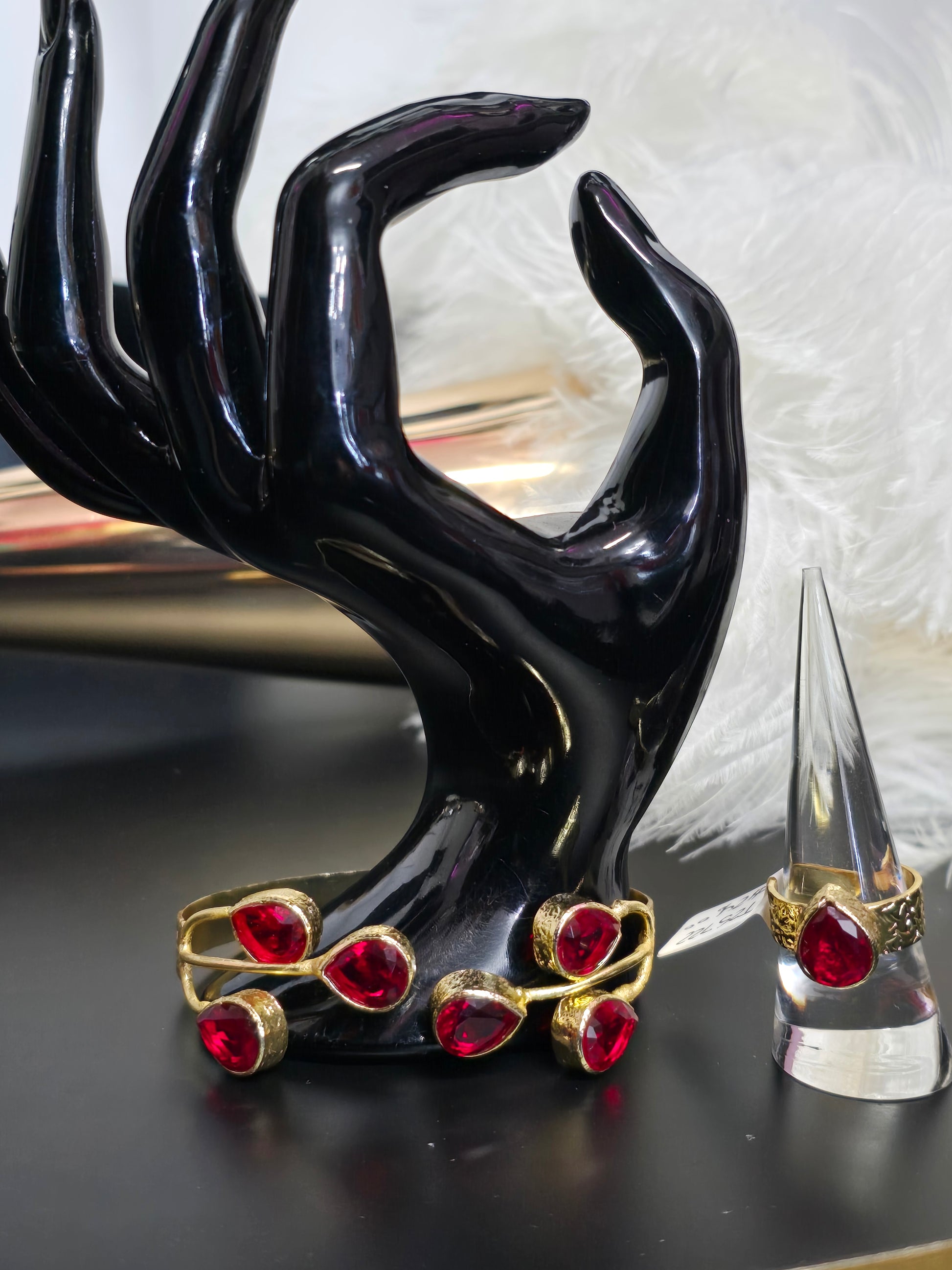 Gold & Red Gems Zamak Adjustable Ring