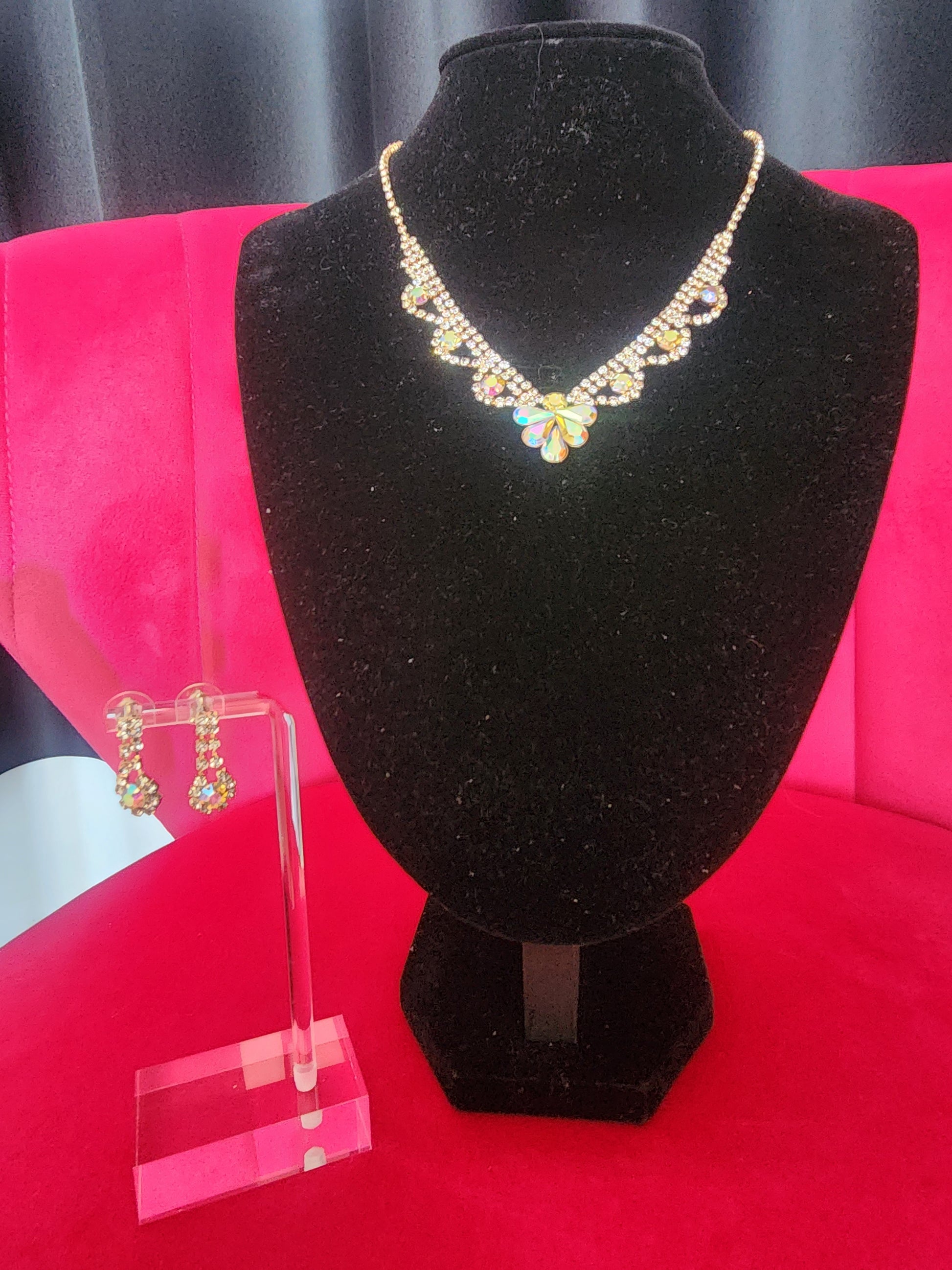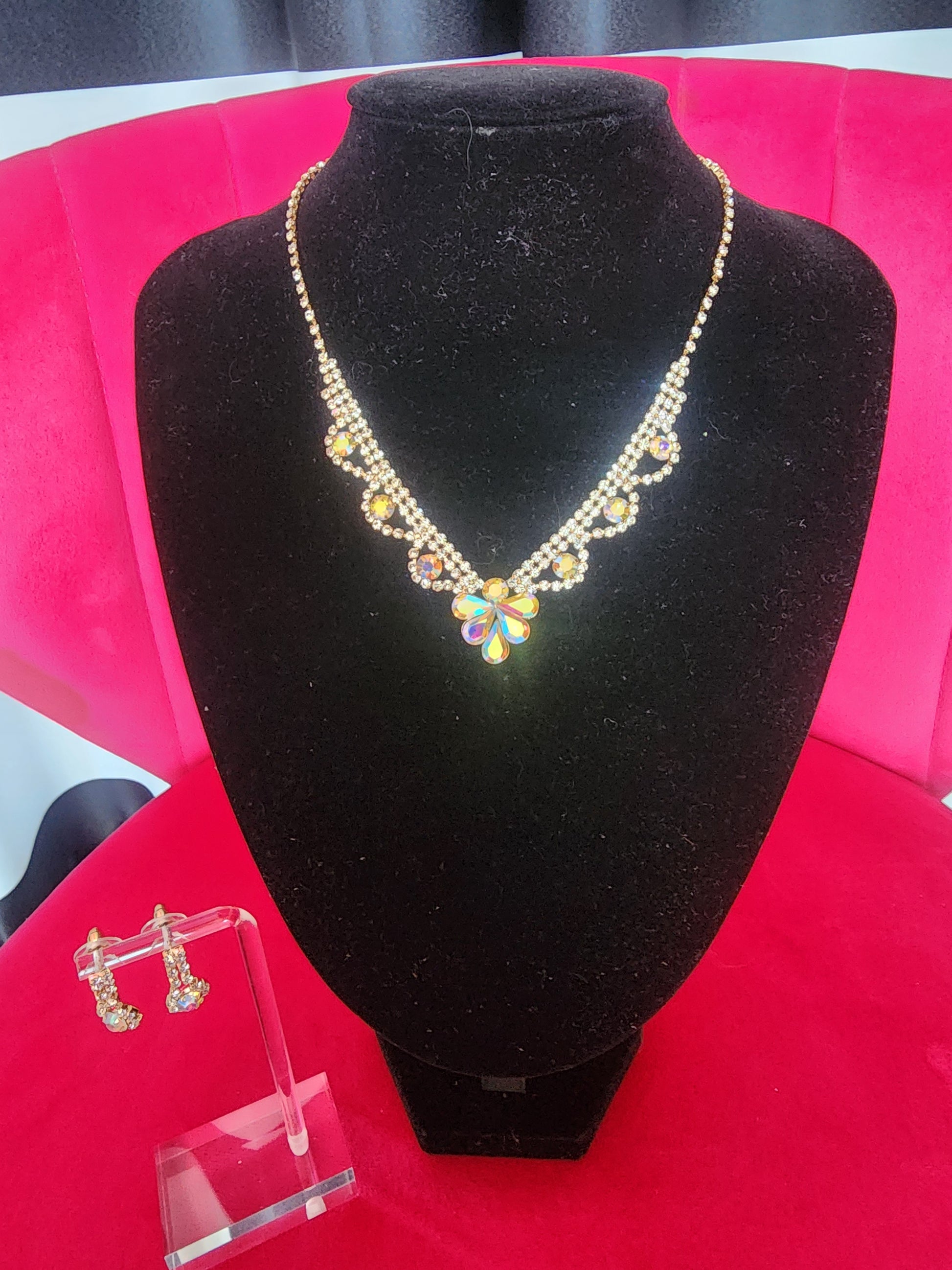Gold Tornasol & Rhinestones Necklace & Earings Set