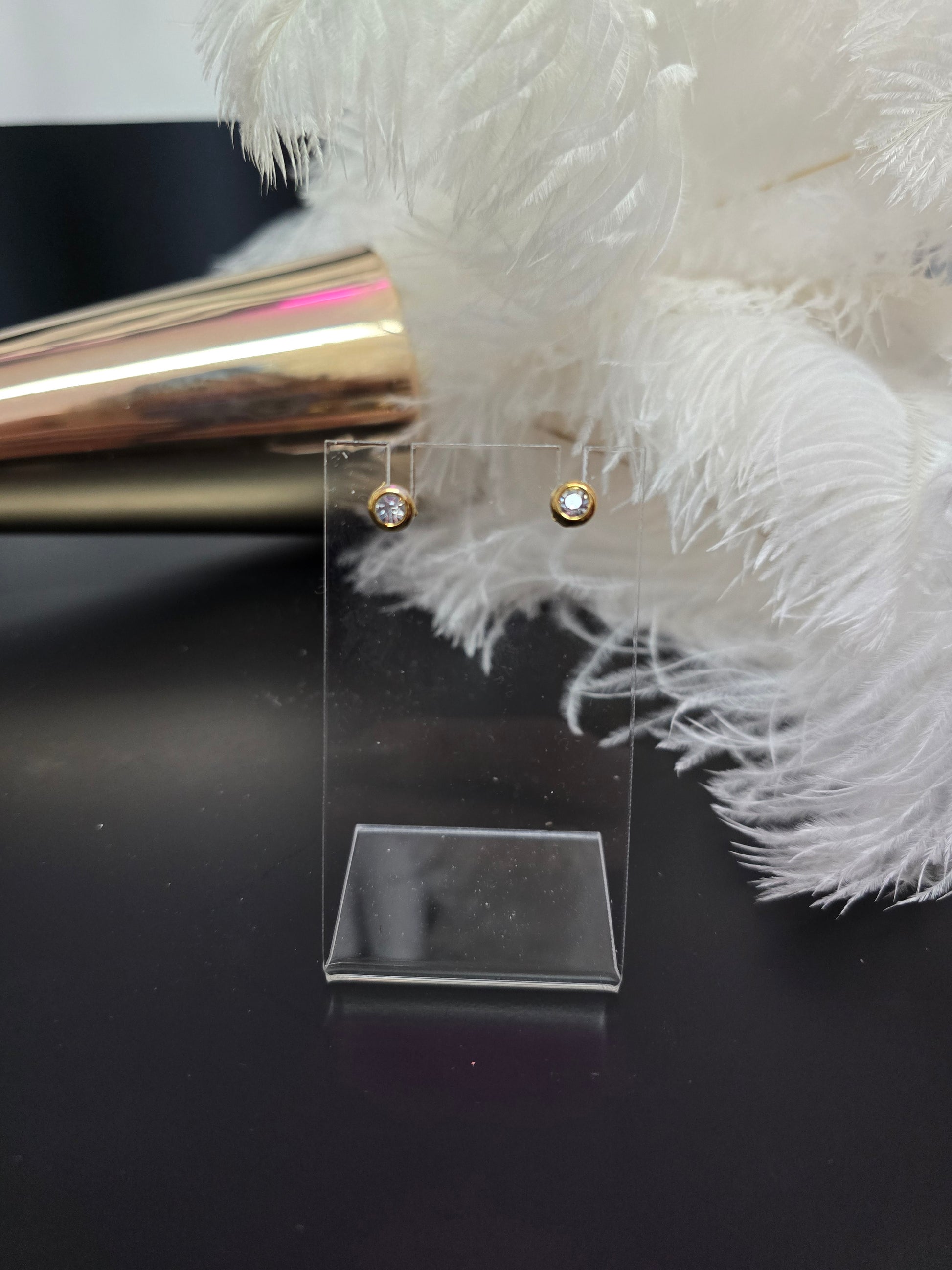Gold & Zirconia Small Stud Stainless Steel Earrings