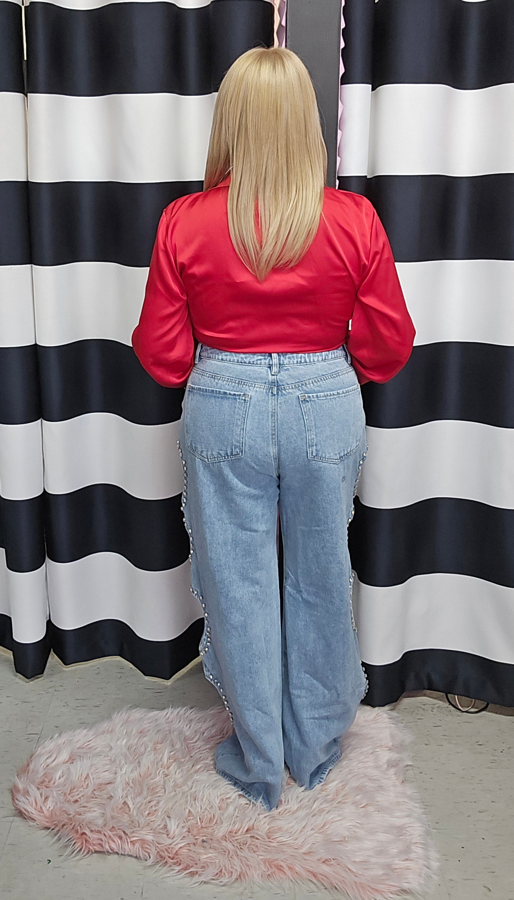 Red Tie Front Long Sleeve Blouse