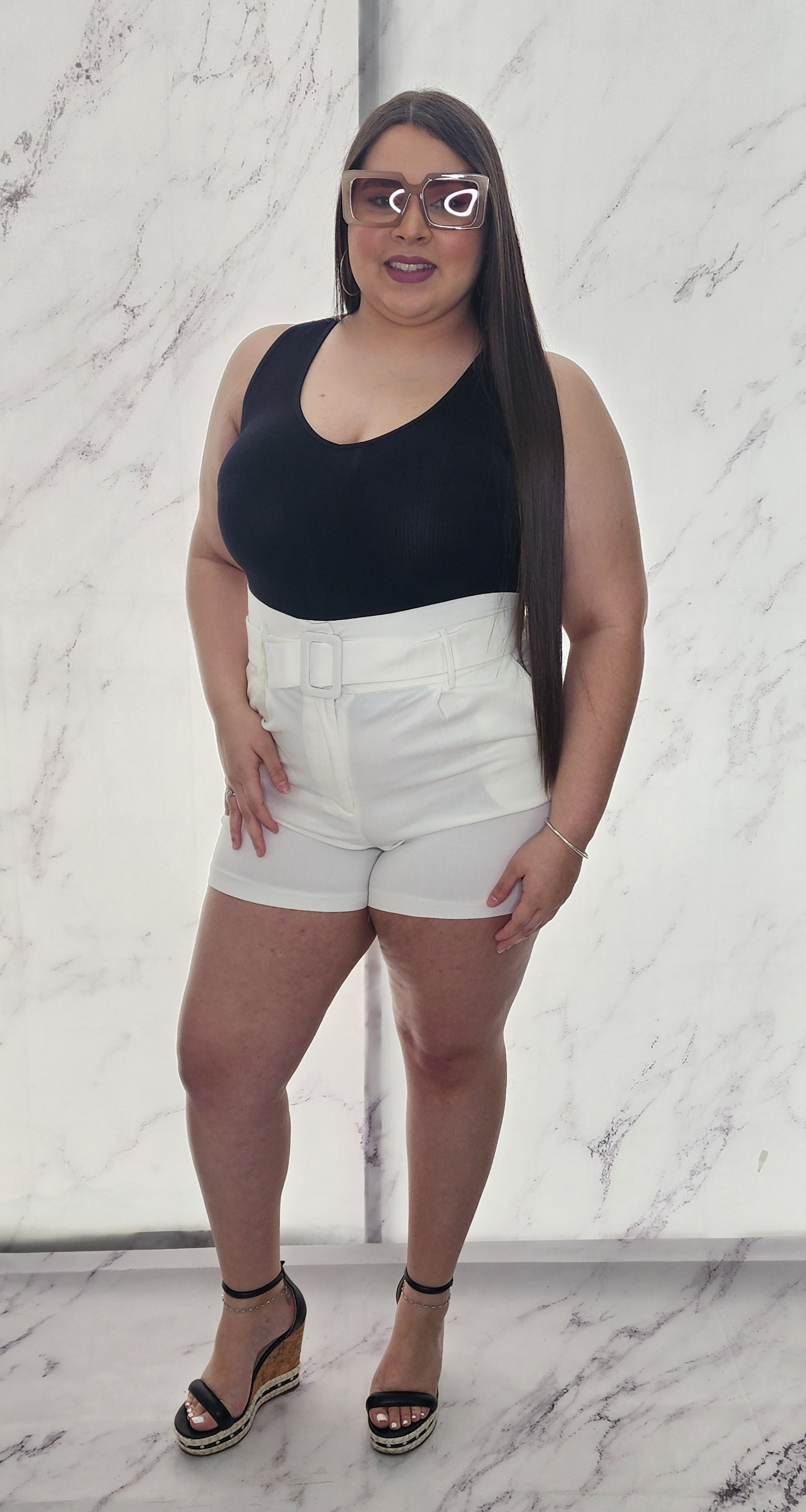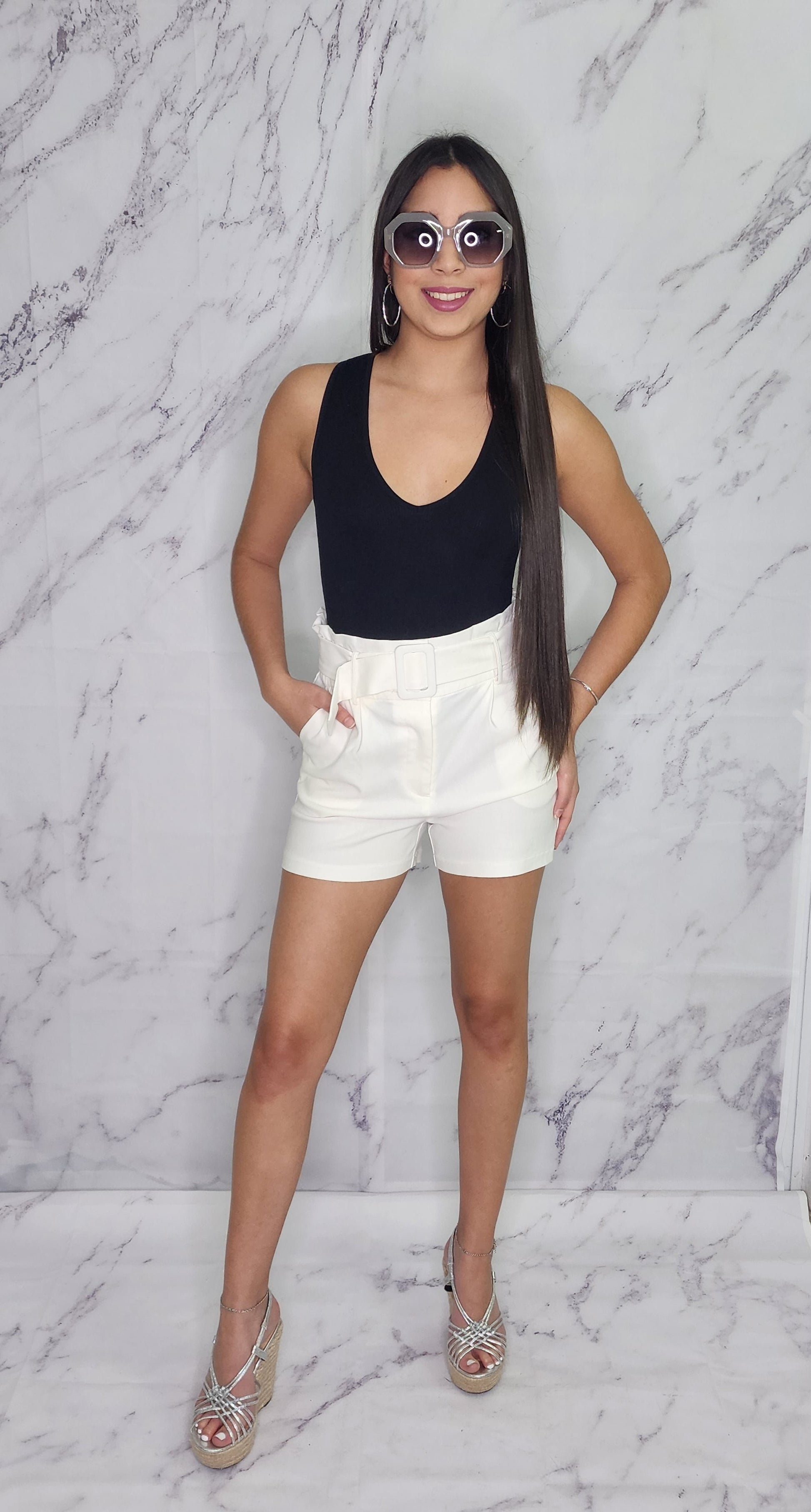WHITE SHORT PANT, RUFFLE WAIST