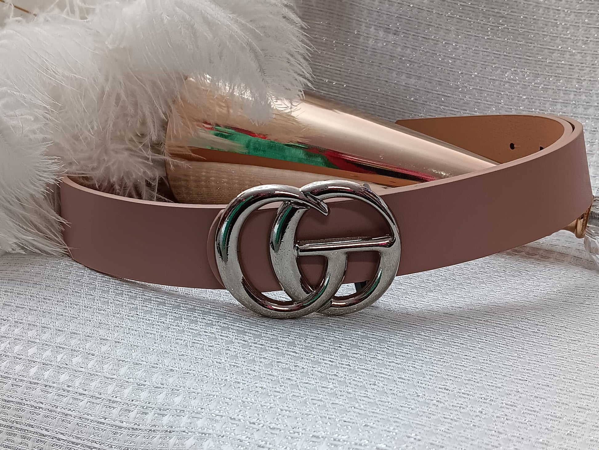 Silver Buckle Nude Belt