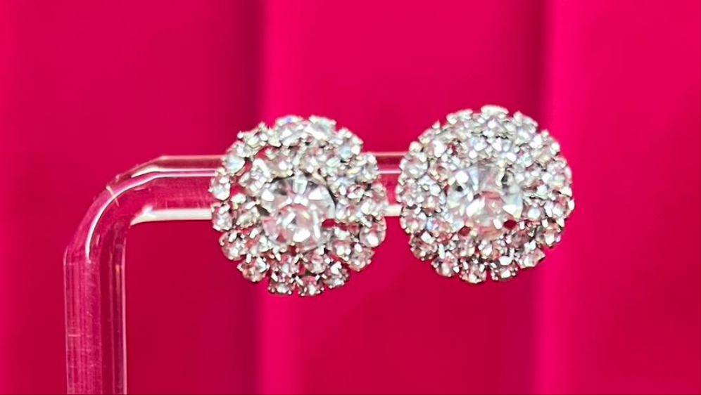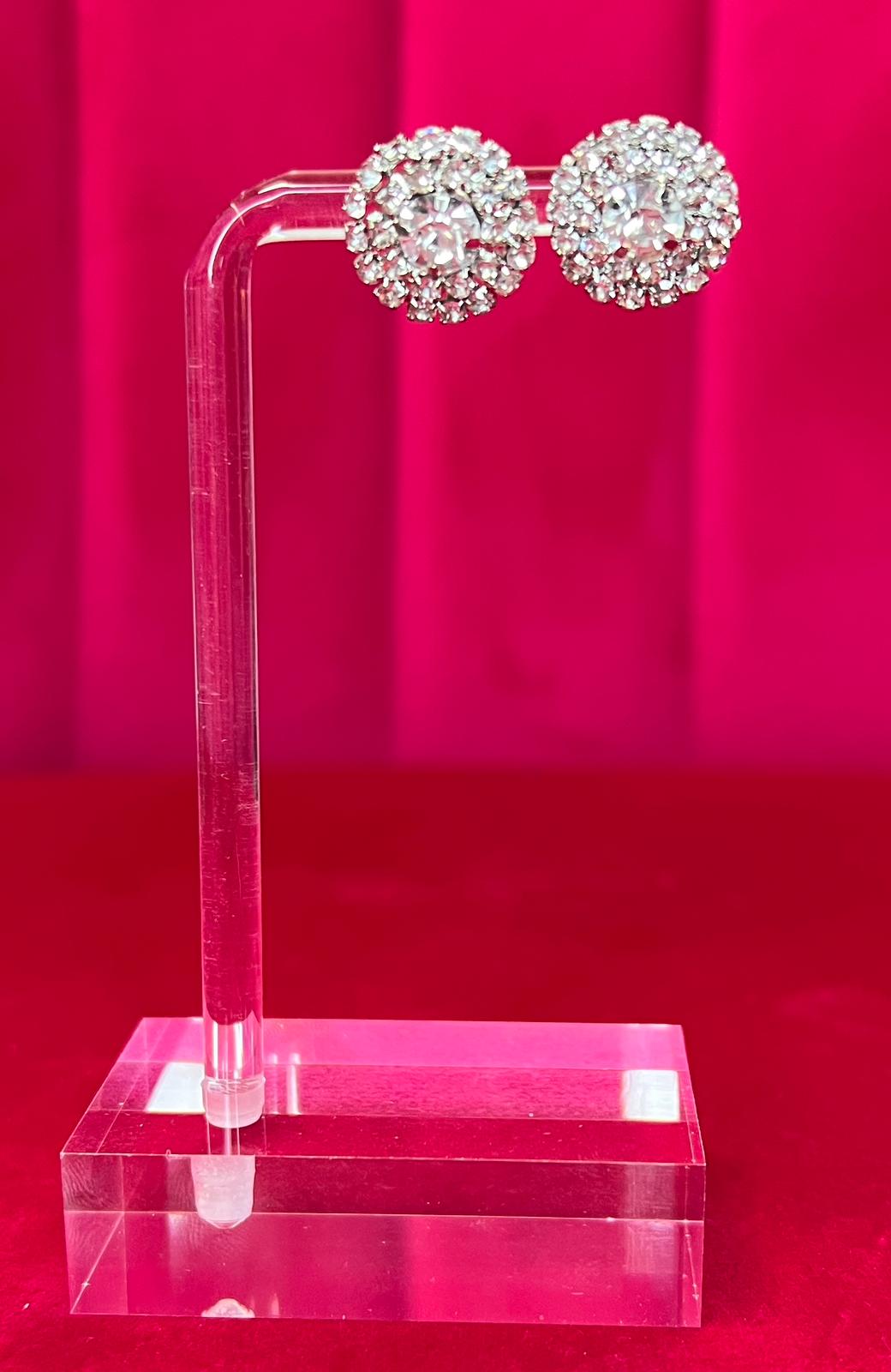 Silver Round Rhinestone Earings