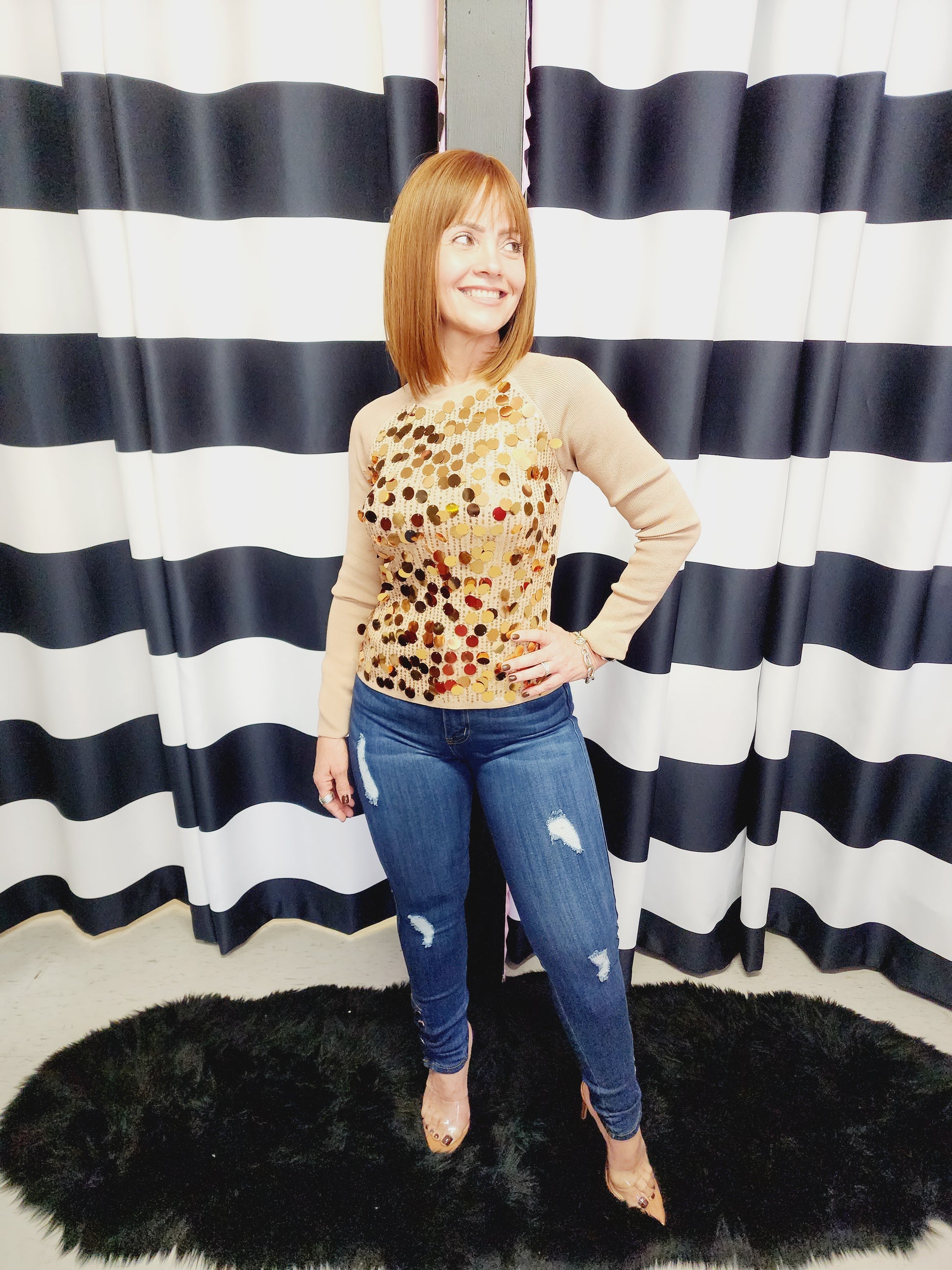 Tan & Gold Long Sleeve Top