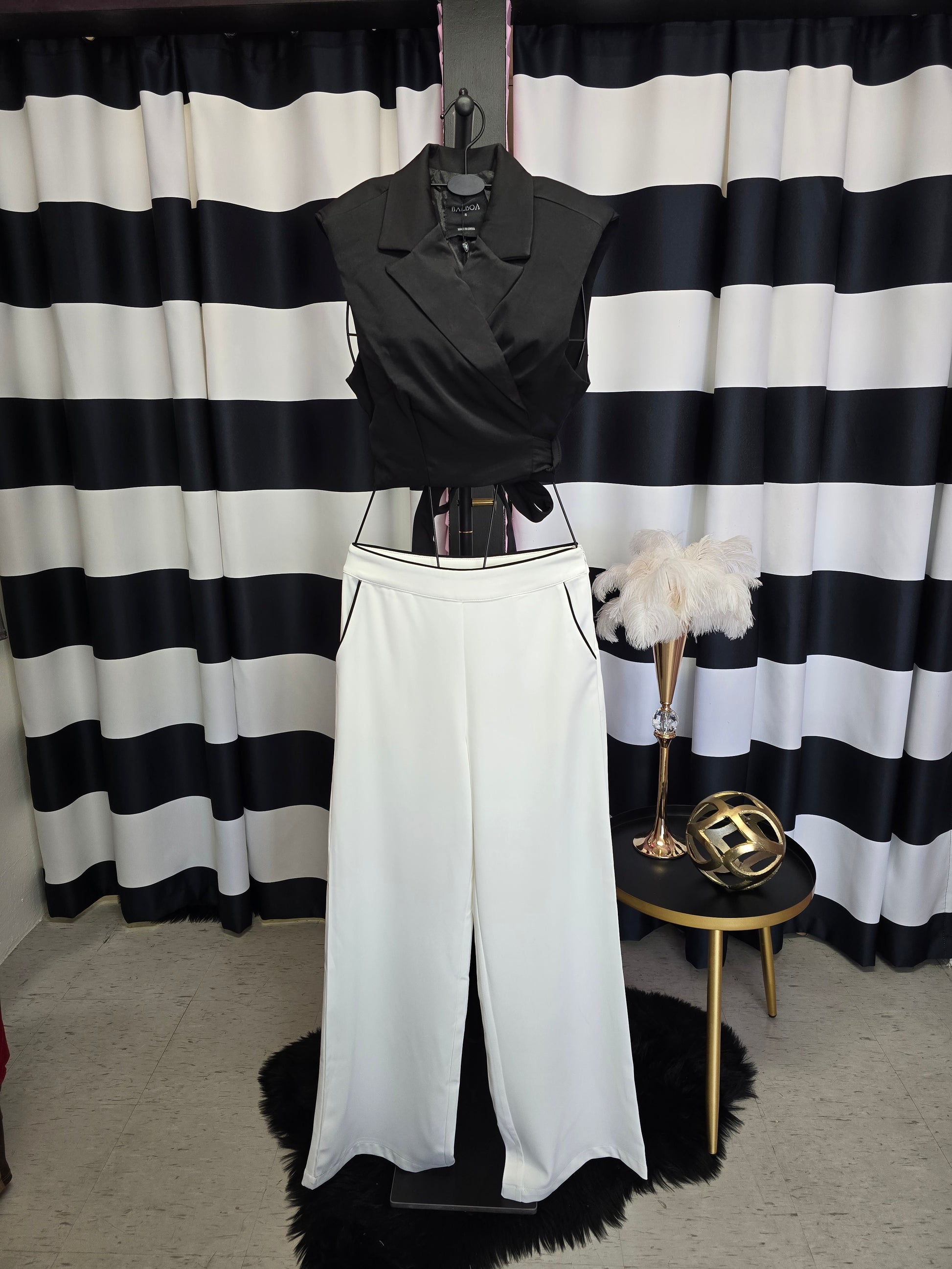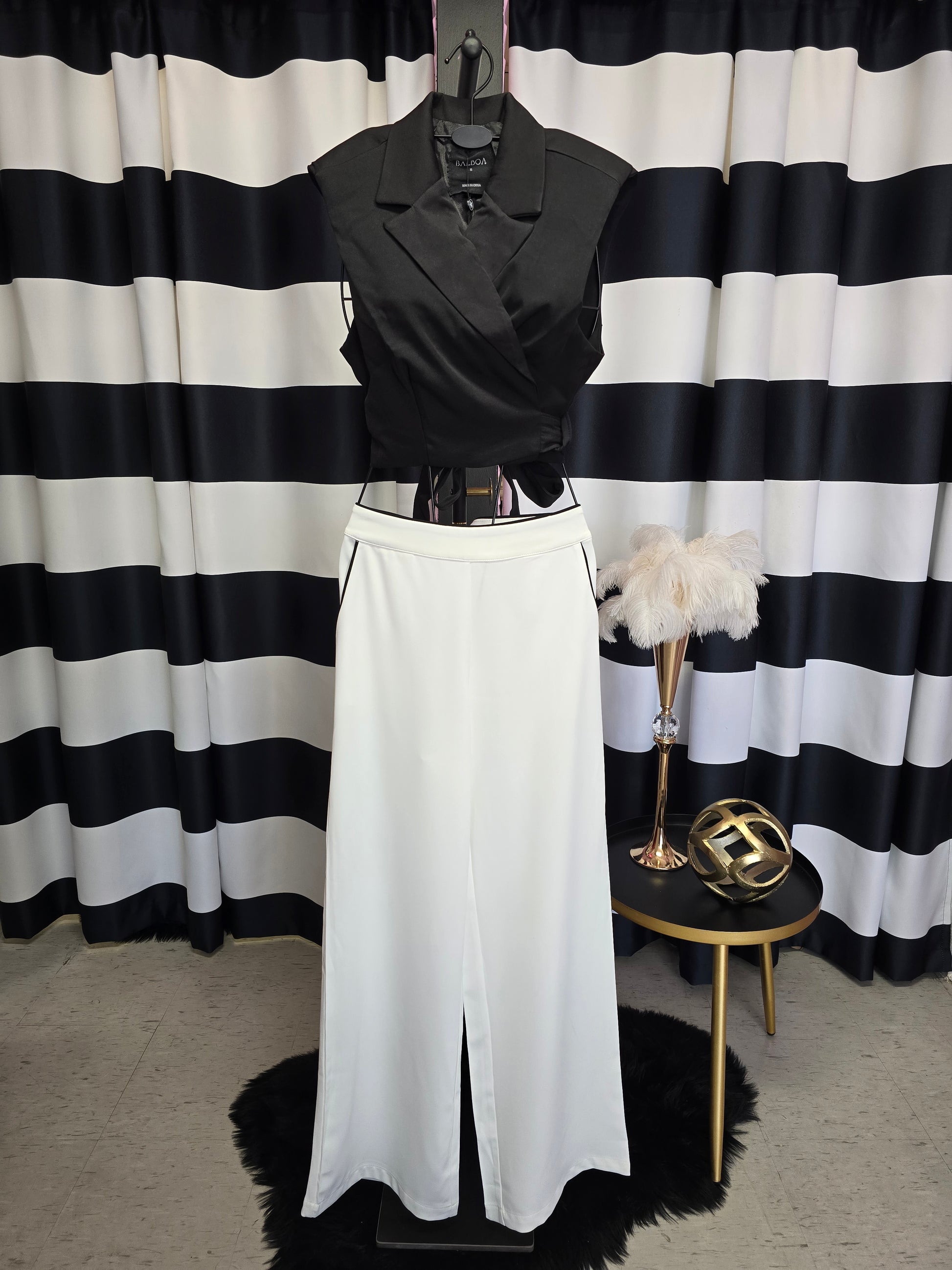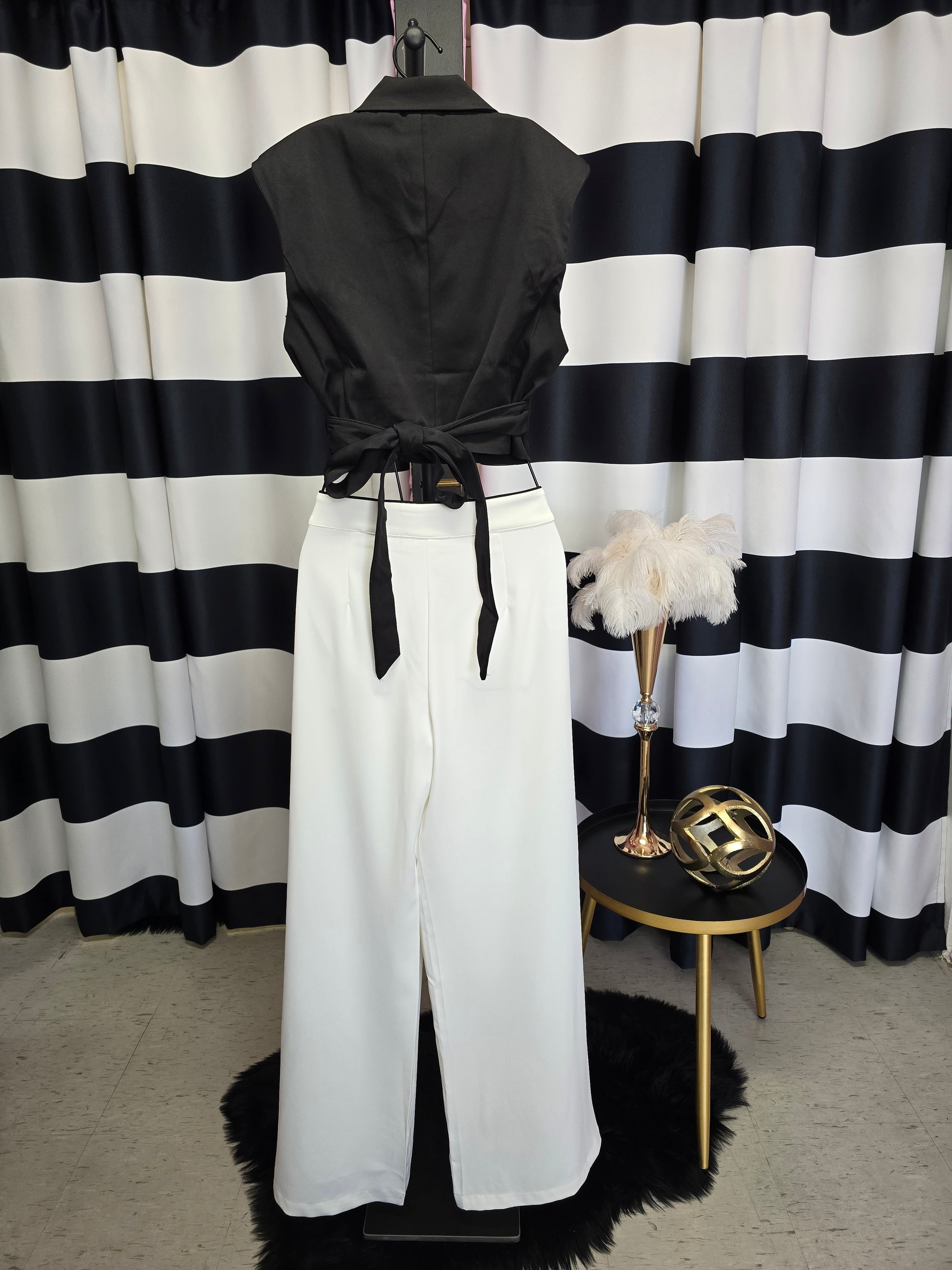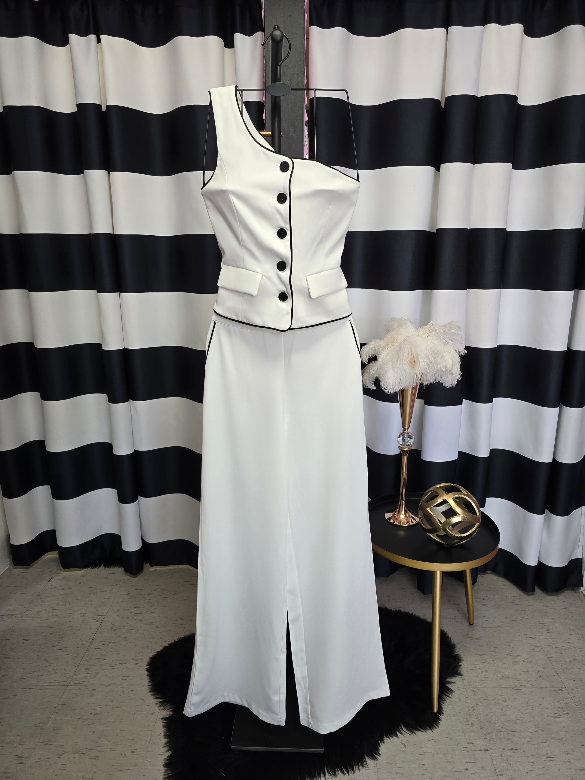 White with Black Trim Long Pant
